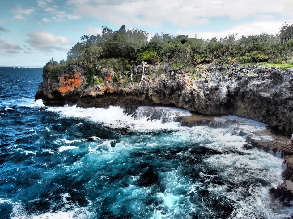 This island boasts some of the more dramatic and varied scenery we’ve seen in the group thus far. Careful conning was required to navigate the shallow lagoon in the lee of the island. The lagoon stretches for miles, and the western side of the island has a long, lazy beach. We hiked to the eastern edge of Kenutu, which faces the full brunt of the tradewinds, and found scenery reminiscent of Big Sur—cliffs and water that was white with washing machine swirls amid the moderate swell and twenty knot winds. There were tropic birds and boobies circling, and one brave sea turtle riding the waves.